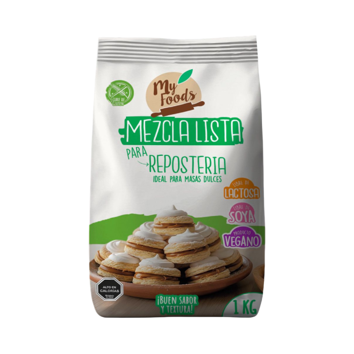 Harina de arroz, Sulfato ferroso, Almidón de maíz, Vitamina b1, Vitamina b2, Vitamina b3, ácido fólico, Polvos de hornear, Goma xanthan, Saborizante natural.