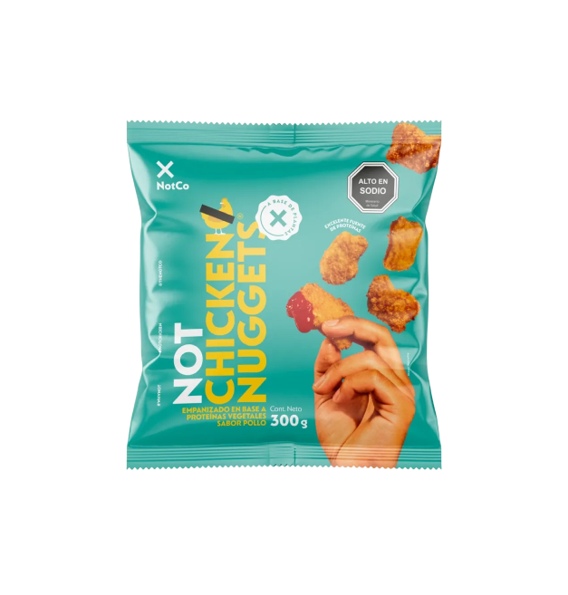 Ingredientes: Agua, harina, aceite de girasol, proteína de arveja, proteína de haba, gluten de trigo, metilcelulosa, fibra de bambú, saborizantes naturales, sal, almidón de maíz, aceite de soya, fibra de trigo, levadura, choclo en polvo, cebolla en polvo, durazno en polvo, ajo en polvo, difosfato disódico, bicarbonato de sodio, cúrcuma.