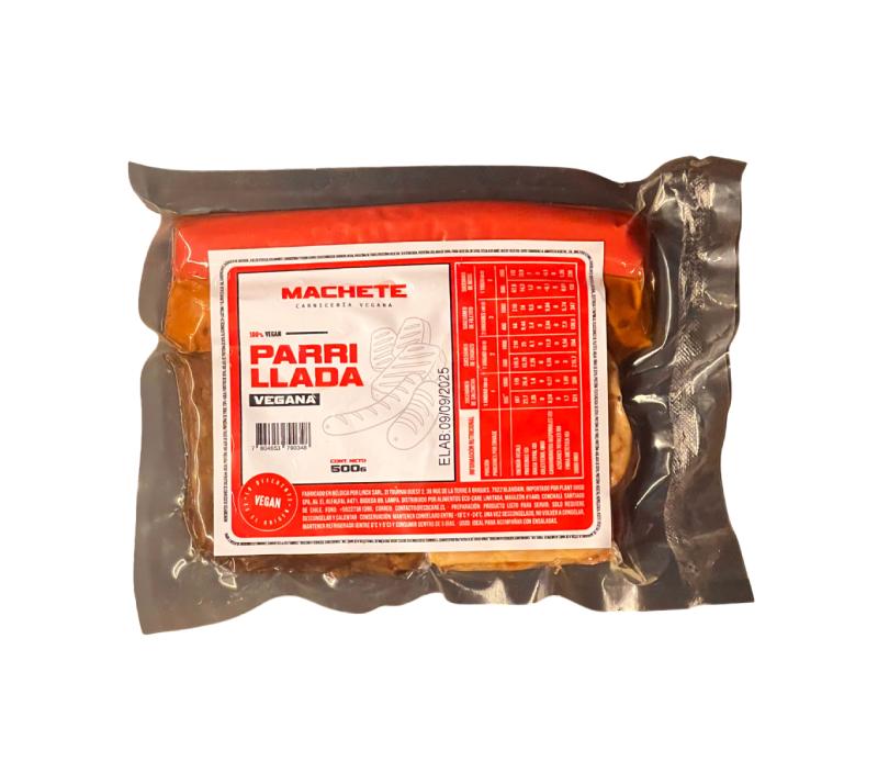 – Sucedáneo de Chorizo: Agua, proteína de trigo, proteína vegetal texturizada, proteína aislada de soya, fibra vegetal de soya, fécula de maíz, aceite vegetal – soya y maravilla – manteca vegetal, sal, maltodextrina, saborizante idéntico al natural, dextrosa y paprika