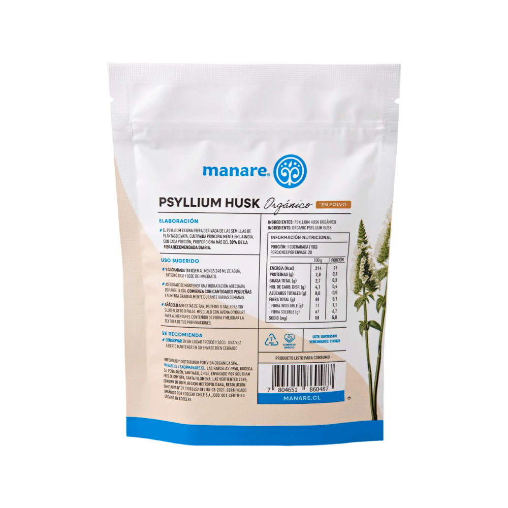 Psyllium Husk Orgánico en polvo 200g – Manare