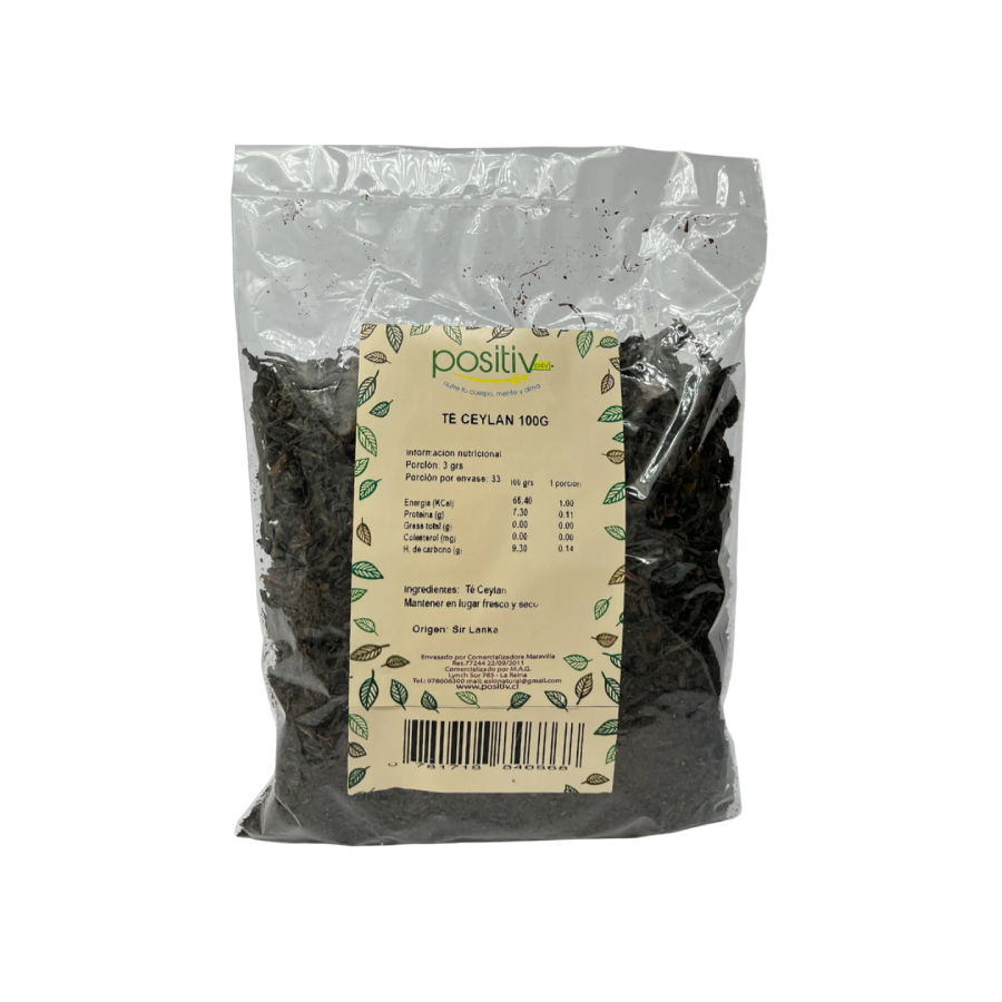 Ingredientes: Té ceylán. Puede contener trazas de gluten, soya, frutos secos y sus derivados.