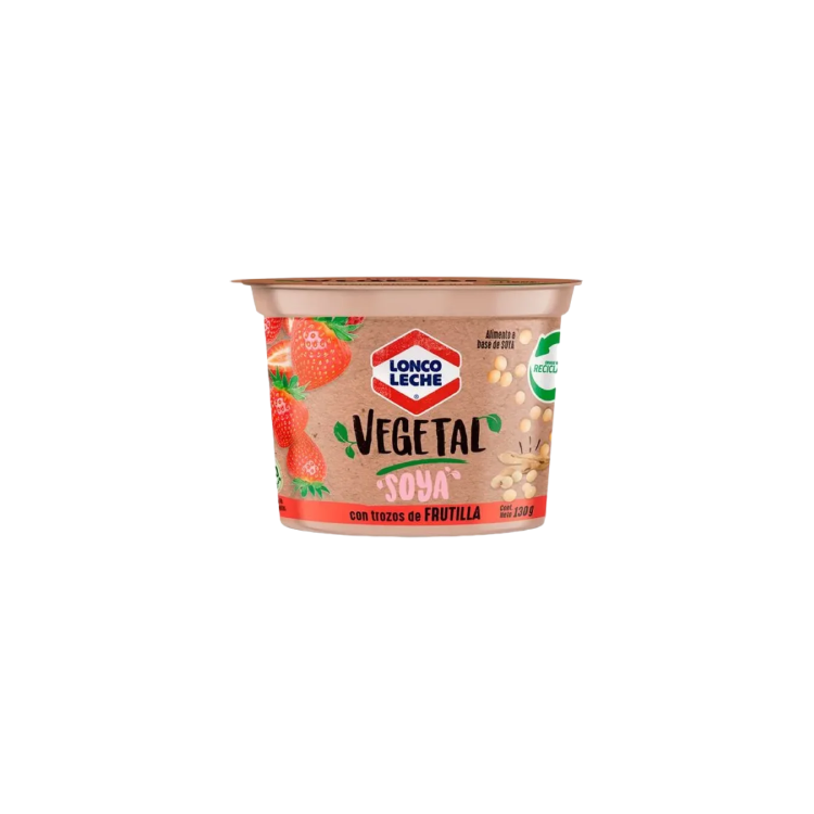 Agua, Proteína aislada de soya (2.7%), Almidón modificado de papa, Dextrosa, Crema de coco en polvo, Polidextrosa, Fibra de soya, Fosfato tricálcico, Extracto de levadura, Sorbato de potasio, Sucralosa, Estevia (glicósidos de esteviol), Cultivos seleccionados, Vitamina b12, Frutillas (6.8%), Agua, Fructosa, Colorante natural antocianina, Almidón de maíz, Saborizante idéntico a natural, Pectina, Lactato de calcio, ácido cítrico, Sorbato de potasio, Sucralosa, Goma guar, Goma xántica, Soya.